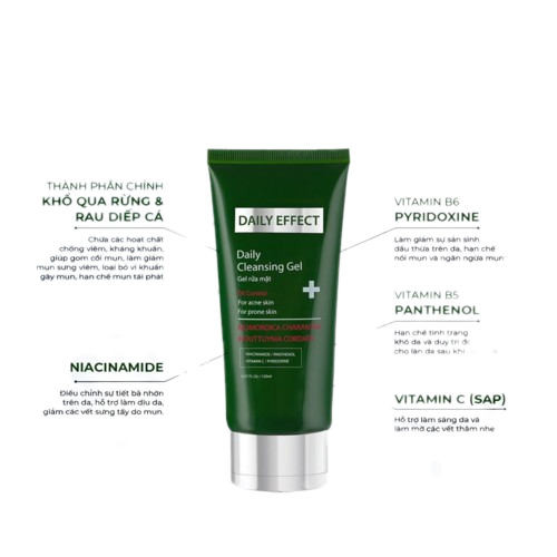 Sữa rửa mặt DAILY EFFECT là sản phẩm chăm sóc da được chiết xuất từ khổ qua rừng và rau diếp cá, giúp làm sạch bụi bẩn, dầu nhờn trên da và cân bằng độ pH cho da. Đồng thời, sản phẩm còn giúp ngăn ngừa mụn hiệu quả. Trong bài viết này, chúng tôi sẽ trình bày chi tiết về thành phần, công dụng, cách sử dụng và lợi ích của sữa rửa mặt DAILY EFFECT cho da.