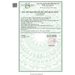Giấy tiếp nhận đăng ký bản công bố sản phẩm số: 7779/2022/ĐKSP. Ngày: 28/12/2022