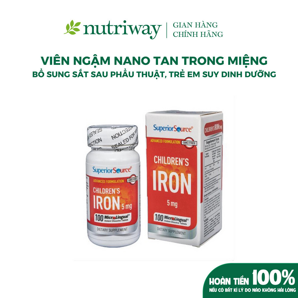 Viên ngậm Nano tan trong miệng bổ sung sắt CHILDREN’S IRON 5mg [NUTRIWAY x SUPERIOR SOURCE]