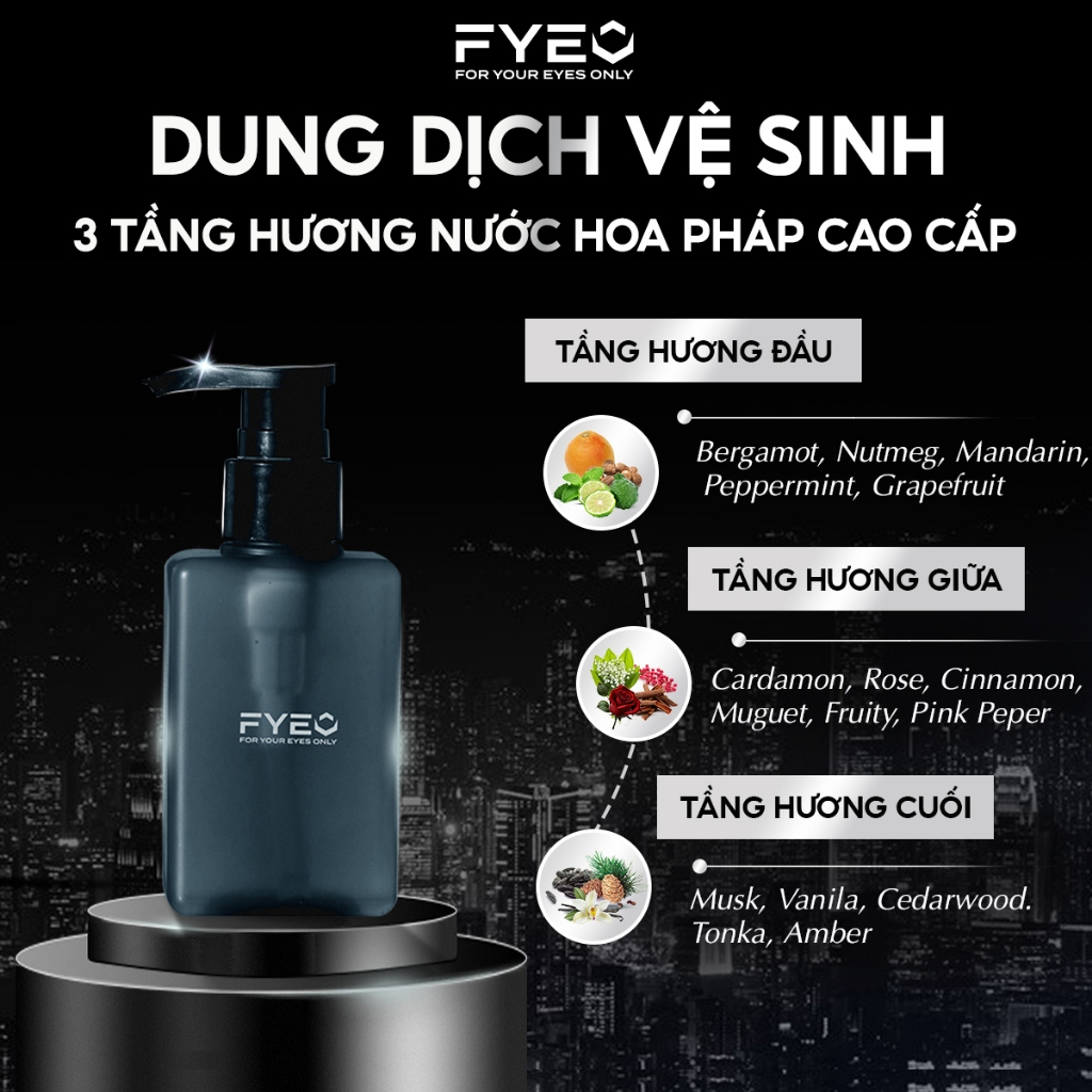 Chào mừng bạn đến với thế giới của FYEO - For Your Eyes Only, thương hiệu mỹ phẩm dành riêng cho nam giới được sáng tạo bởi CEO Quốc Trường và đội ngũ chuyên gia hàng đầu trong lĩnh vực nghiên cứu mỹ phẩm. Sau 3 năm nghiên cứu kỹ lưỡng, chúng tôi tự hào giới thiệu Dung Dịch Vệ Sinh Nam FYEO, sản phẩm độc đáo đầu tiên và duy nhất tại Việt Nam.