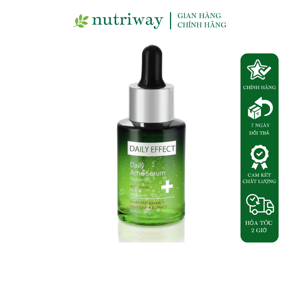 Daily Skin Serum có tác dụng cấp ẩm và làm căng mịn da giúp da luôn ngậm đủ nước, se khít lỗ chân lông, kiểm soát bã nhờn và dầu thừa cực tốt