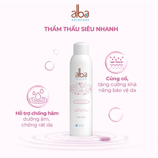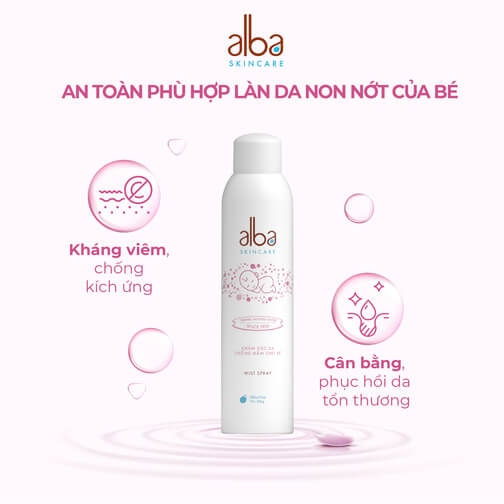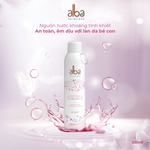 Xịt khoáng chăm sóc da chống hăm cho bé Alba Skincare 300ml, được sản xuất tại Việt Nam bởi thương hiệu Alba Skincare.