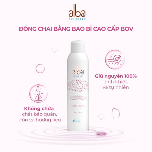 Alba Skin Care đóng chai bằng bao bì cao cấp dùng trong dược phẩm – Công nghệ BOV giúp giữ được sự tinh khiết, nguyên vẹn của nước khoáng thiên nhiên, độ pH = 6 phù hợp và tốt cho mọi loại da, an toàn cho mọi lứa tuổi.